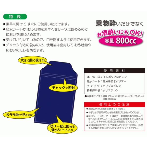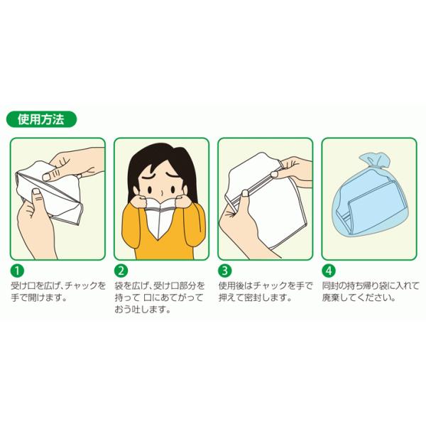 ● チャック付きの袋なので、使用後は密封して おう吐物やにおいのモレを防ぎます