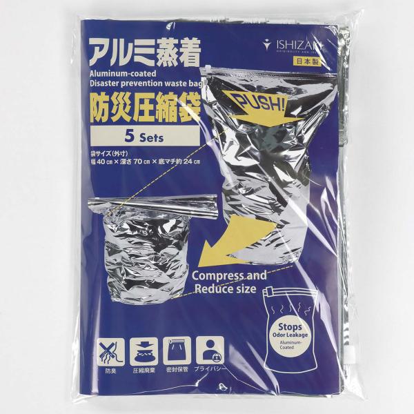 アルミ蒸着防災圧縮袋 5枚入り 防災用品 防臭 ゴミ圧縮 密封 バリア素材 防災グッズ 防災対策 防臭 臭い 漏れない 臭わない