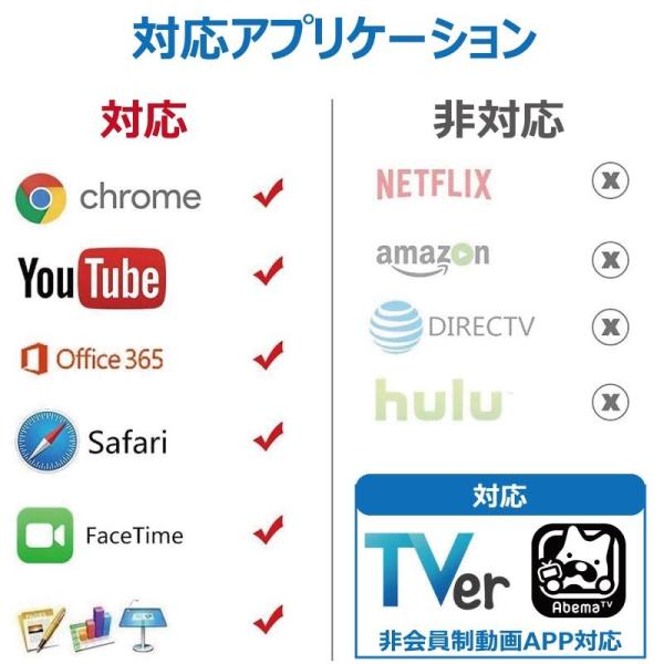 アプリケーション、プレゼンテーション、ウェブサイト、スライドショーなどをHDMI搭載のテレビ、ディスプレイ、プロジェクタなど互換性のあるディスプレイに最大1080pのHD画質でミラーリングできます。
