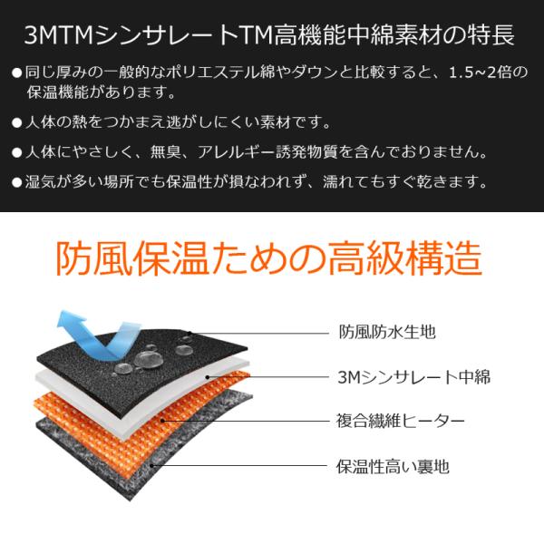 高機能保温の3M素材を採用されますので、さらに電気発熱で防寒防風。