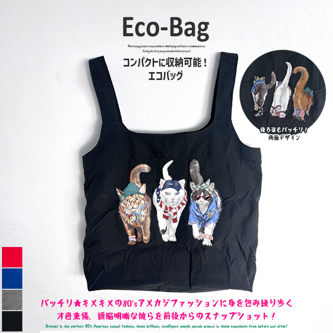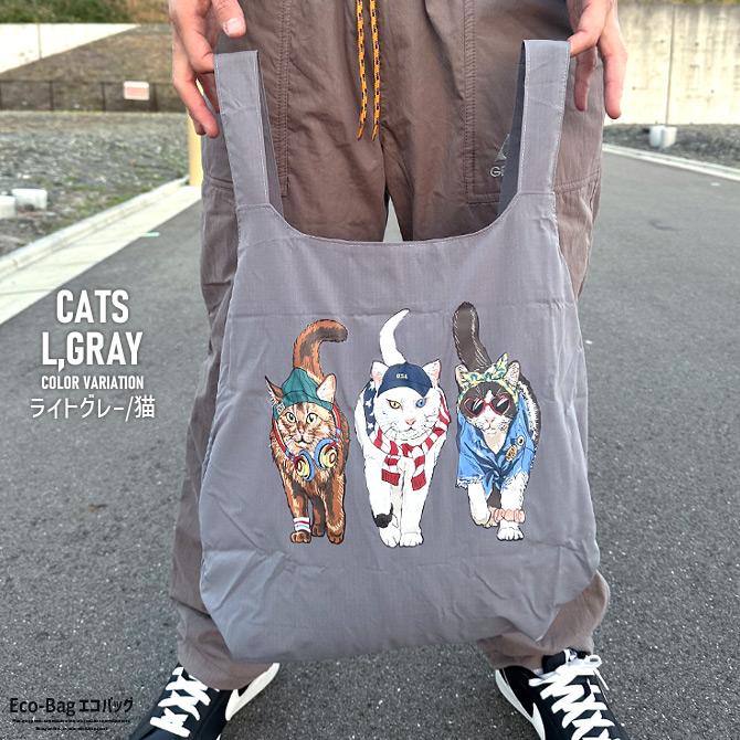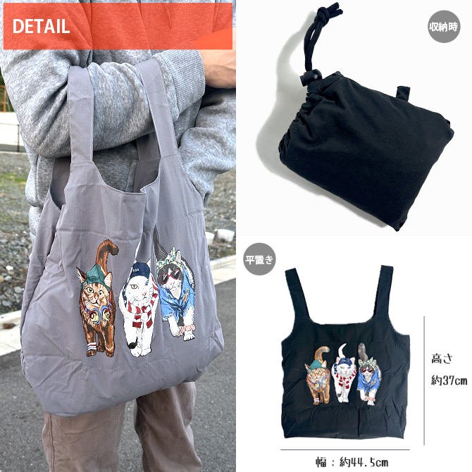 エコバッグ ポリリップ 猫プリント ネコ キャッツ 猫バッグ ポケッタブル ショッパーバッグ ショッピングバッグ アニマルプリント 買い物袋 トートバッグ