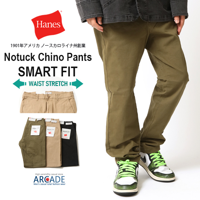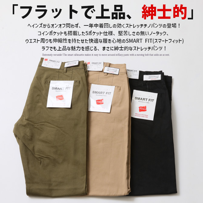 Hanes ヘインズ チノパンツ メンズ ストレッチ 紳士 ノータックパンツ レギュラー ズボン ボトムス/爆買