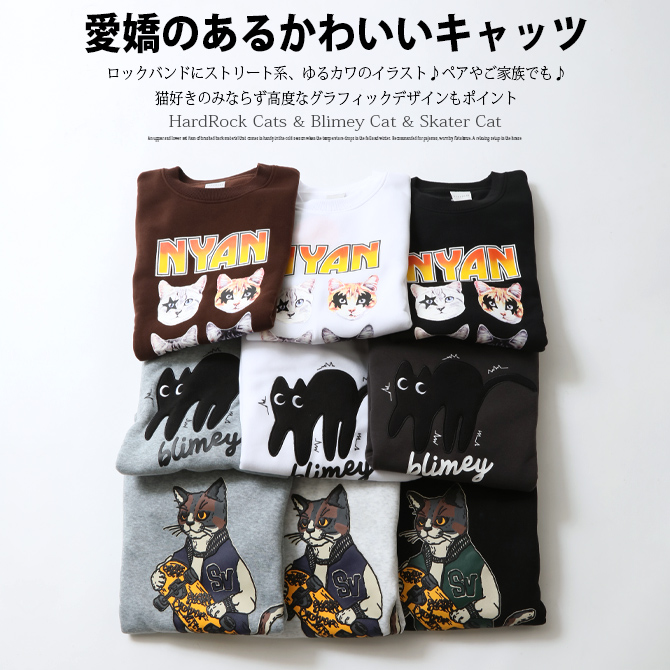 半額セール 猫 ネコ トレーナー 暖かい裏起毛 スウェット トレーナー メンズ レディース クルーネック ハードロックバンド スケーター ゆるかわ キャッツ/爆買