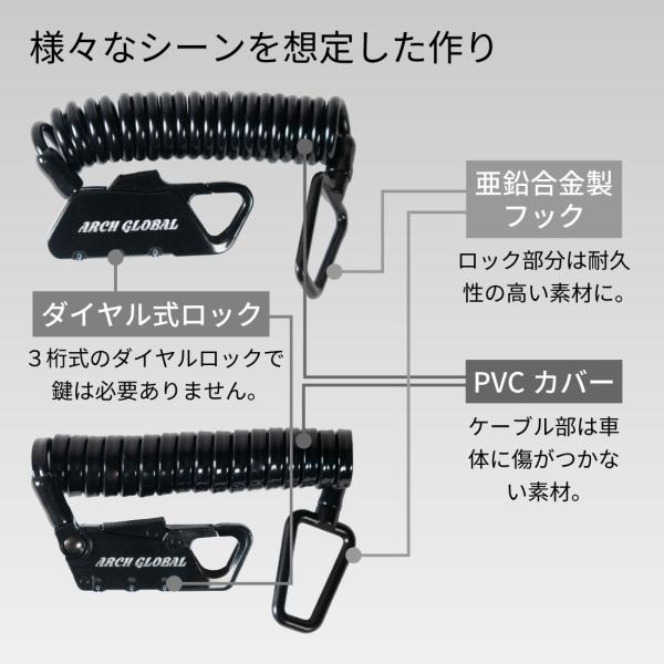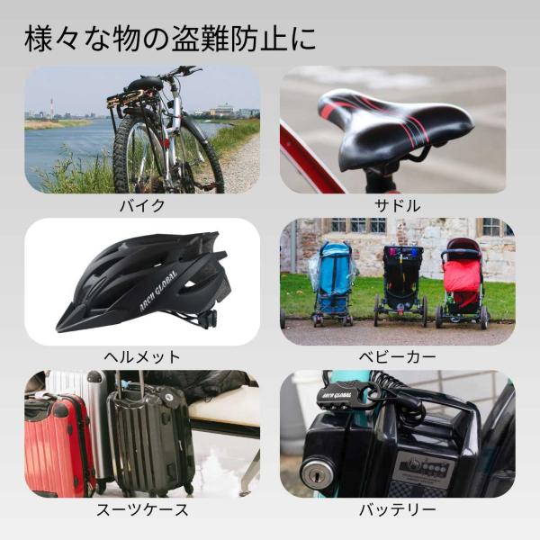 ARCH GLOBAL 自転車 鍵 ダイヤルミニロック【太さ5mm×長さ最大1200mm】 3桁 ミニロック 小型ロック 簡易ロック 自転車 鍵 ベビーカースーツケース 黒 盗難防止