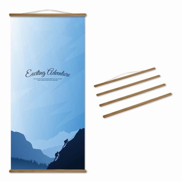 掛け軸風 ポスターハンガー (柚木色) 幅60センチ マグネット式 強力磁石 吊り下げ式 木製 タペストリー棒 ポスターフレーム