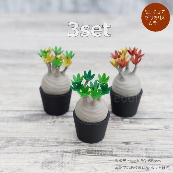 3D フィギュア ミニチュア 3セット カラー グラキリス パキポディウム オーナメント フェイクグリーン 塊根植物 コーデックス 多肉植物 LOBINDON