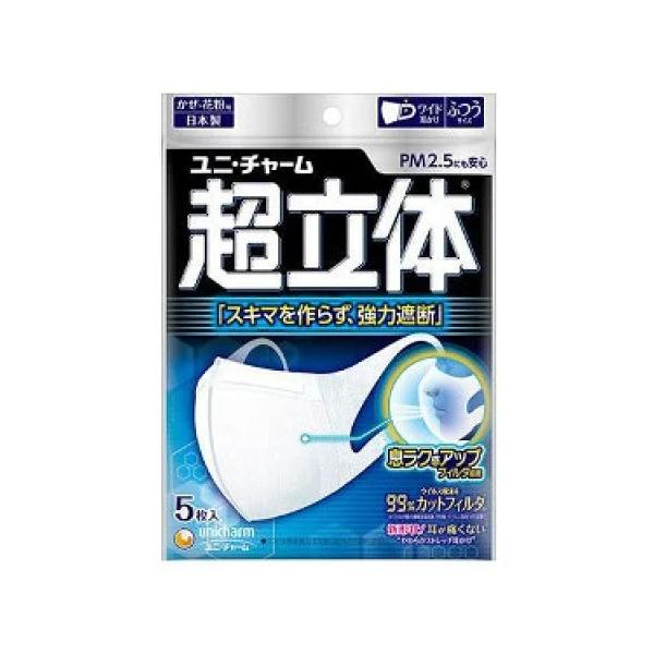 【アウトレット】ユニ・チャーム 超快適マスク プリーツタイプ 5枚入 やや大きめ 日本製 ホワイト ※訳ありパッケージにキズしわの場合あり