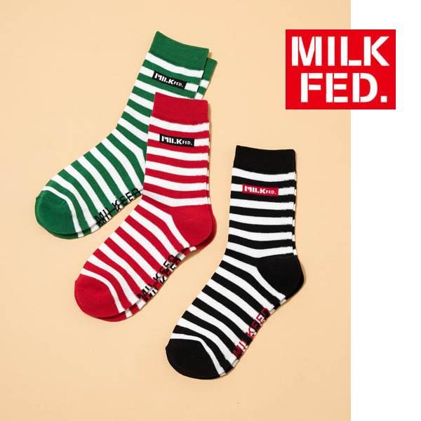靴下 ソックス ミルクフェド レディース クルーソックス MILKFED STRIPED BAR LOGO SOCKS 103232054003 黒