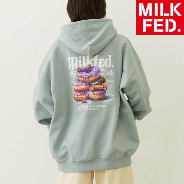 パーカー スウェット ミルクフェド MILKFED DONUTS LOGO SWEAT HOODIE レディース 黒 水色 フーディ 秋服 冬服