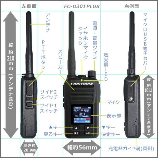 F.R.C. FIRSTCOM 総務省技術基準適合品 免許・資格不要 UHFデジタル 簡易無線登録局 デジタル 97ch対応 ハイパワー・デジタルトランシーバー FC-D301 PLUS W