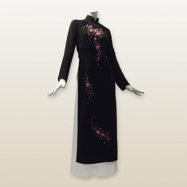 花刺繍ラメ付きアオザイ 長袖(上着のみ)※パンツ別売り / ベトナムアオザイ 民族衣装 二胡衣装 コスプレ衣装