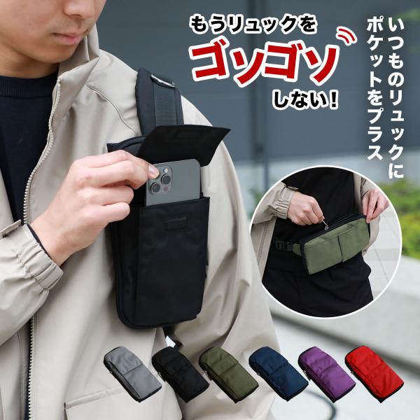 \リュックサックの中、毎回探してしまう人へ/ スマホポーチ スマホ ポーチ リュック 取り付け ポーチ plus pocket プラポケ カスタム +poket 在庫処分 0211