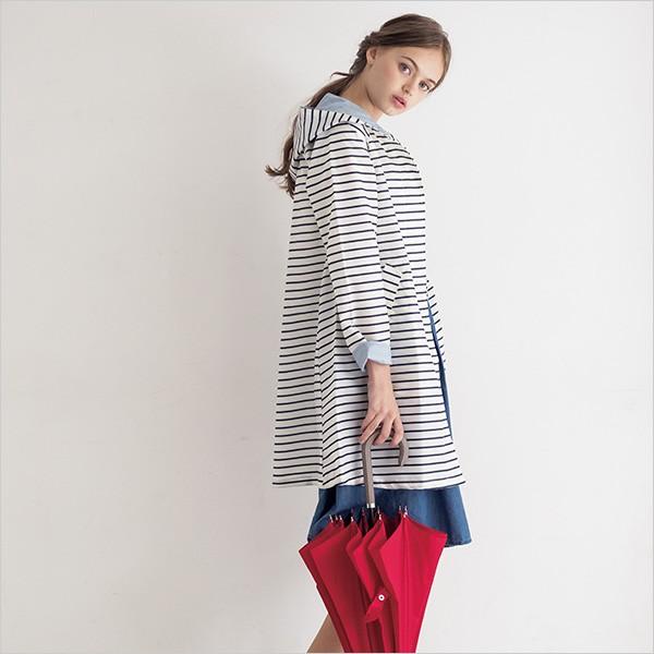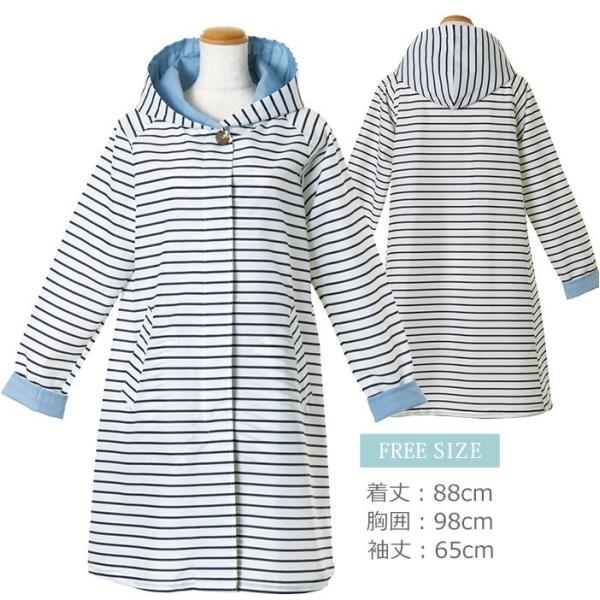 【50%OFF★在庫処分SALE】レインコート フード付きコート レディース スプリングコート ボーダー はっすい加工 ボーダーフーディーCLS 0228
