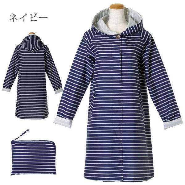 レインコート フード付きコート レディース スプリングコート ボーダー はっすい加工 はっ水 折りたたみ 雨の日 プレゼント 女性 ナイロン 撥水加工 通勤 着痩せ ビコーズ 入学式 梅雨