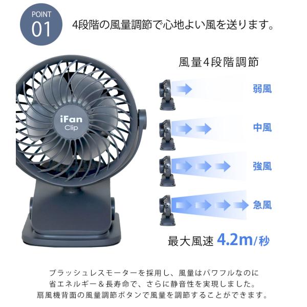 1)4段階風量調節(微風、中風、強風、急風)最大風速4.2m/秒