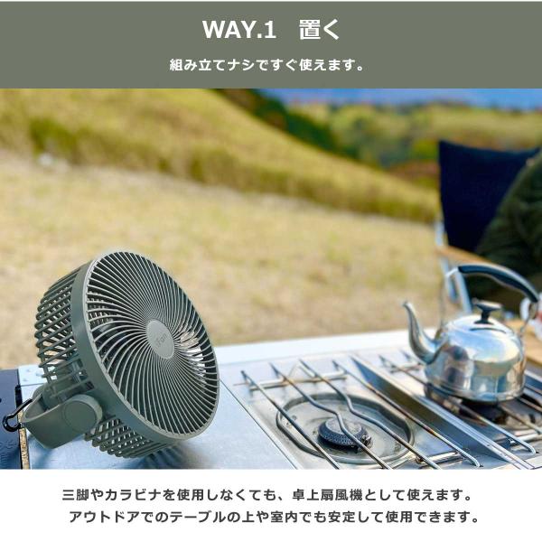 扇風機 卓上扇風機 サーキュレーター ファン コンパクトファン ポータブルファン ポータブル 携帯 コンパクト 小型 軽量 小さい コードレス 充電式 充電 三脚 三脚スタンド スタンド カラビナ フック 掛けられる 掛ける 吊るされる 吊る カラビナ付 フック付 置き型 レジャー アウトドア キャンプ ソロキャンプ ひとりキャンプ 一人キャンプ 夏 サマー 暑い 熱中症 熱中症対策 対策 空気 循環 シンプル おしゃれ インテリア 角度調節 角度調整 高さ調節 高さ調整 高さ 変えられる USB USB充電 持ち運び 持ち運べる アウトドアファン 卓上ファン デスクファン