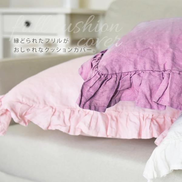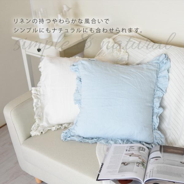 クッションカバー リネン 45×45 リネンフリルクッションカバー 麻 100% フリル 無地 シンプル ナチュラル ソファ ベッド リビング かわいい 可愛い おしゃれ 北欧 新生活 新居 インテリア 雑貨 洗濯可 プレゼント ギフト