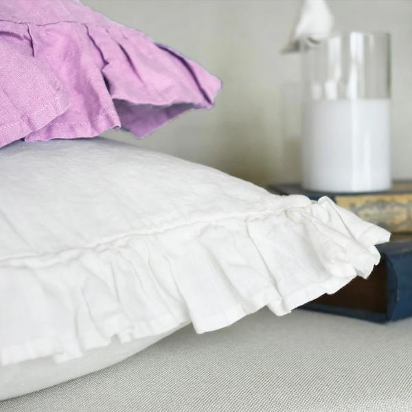 【完売】クッションカバー 45×45 かわいい リネンフリルクッションカバー リネン 麻 100% フリル 無地 おしゃれ 北欧