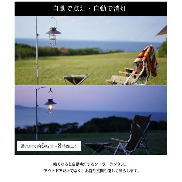 【商品詳細】・自動点灯で手間いらず(昼間に充電)・配線がいらないので、設置も簡単・ランタンで癒しの空間を演出・安心の防水構造