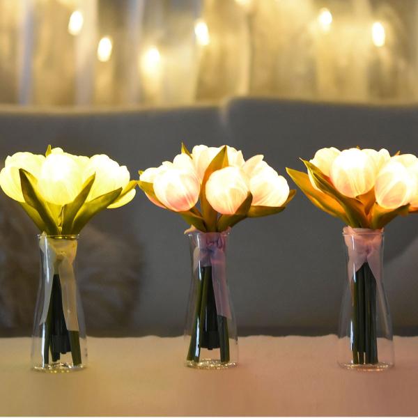 【完売】インテリア フラワーライト 花束 観葉植物 ブーケ 洋風 ブルームチューリップ 高級 リアル 玄関 豪華 ミニ 薔薇 オレンジ アレンジ 通販 リビング 人気