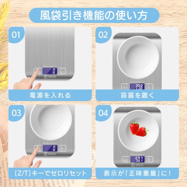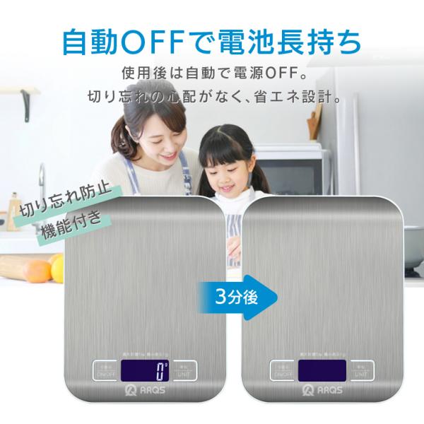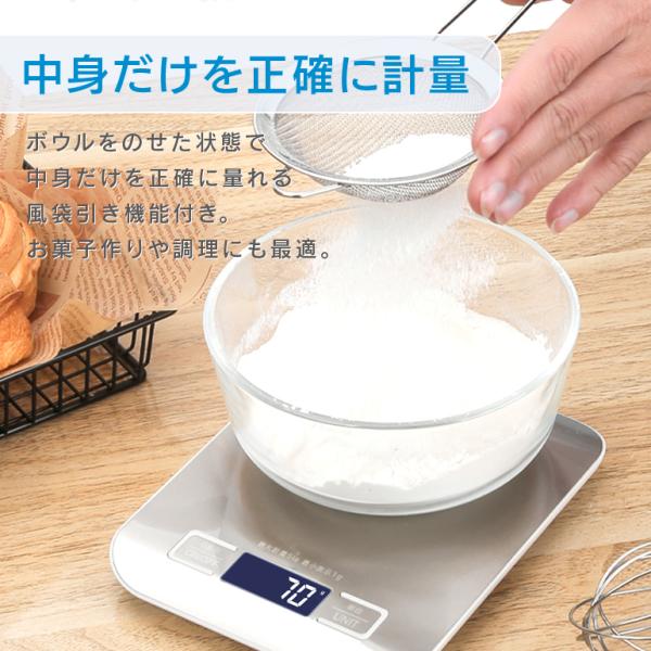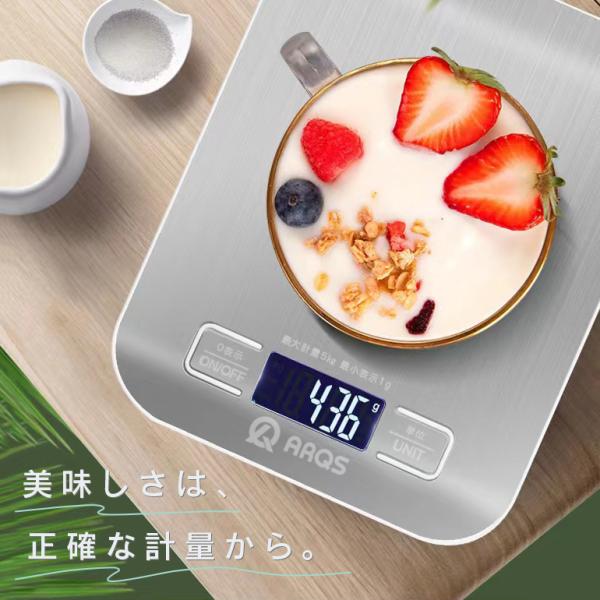 デジタルスケール 高機能 5kg 1g単位 高精度 ステンレス天面 風袋引き はかり調理用 自動OFF 電池付き g/kg/lb/oz/ml/milk対応 コンパクト キッチンスケール