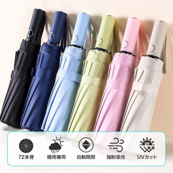 自動開閉 折り畳み傘 晴雨兼用 折りたたみ 傘 UVカット 72本骨 折りたたみ傘 紫外線対策 日焼け対策 耐風 強化撥水 撥水 丈夫 強風 紫外線 紫外線カット UPF50+