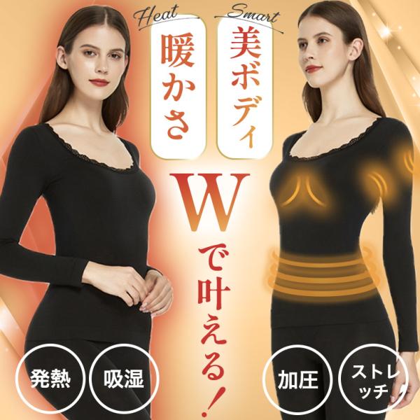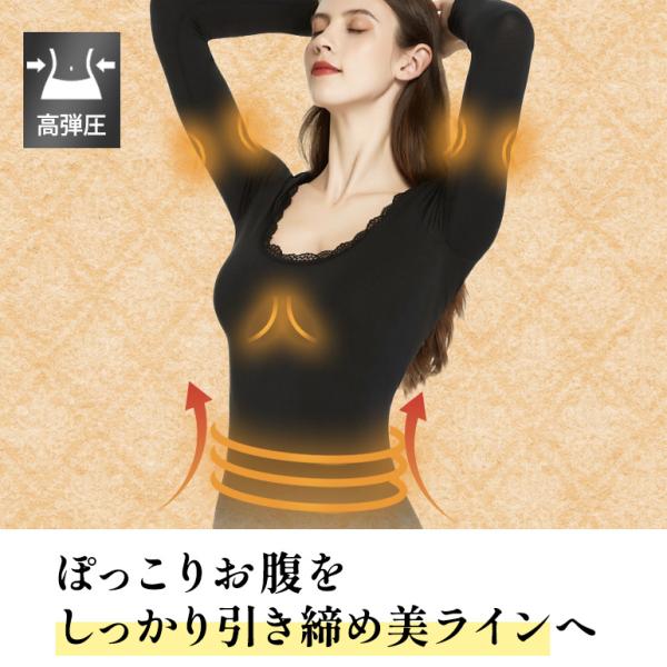 加圧インナー レディース ヒートインナー 長袖 ラウンドネック 補正下着 レース 加圧シャツ 冬用 暖かい 保温 快適 女性用 吸湿 発熱 くびれメイク 着圧