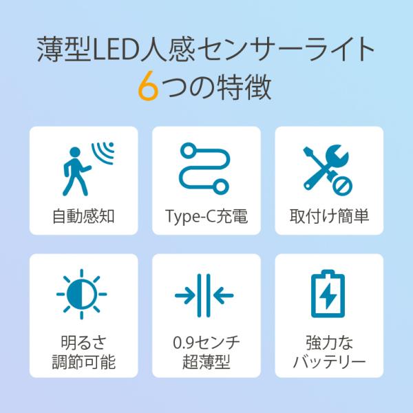 薄型LEDセンサーライト ライト 無段階調光 充電式 感知式
