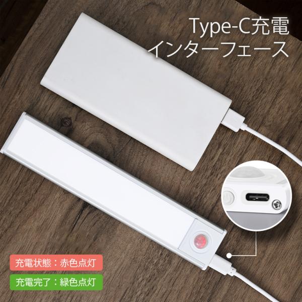 薄型センサーライト 【60cm】LED センサーライト 薄型 ライト 人感センサー USB充電式 マグネット 壁掛け照明 工事不要 自動消灯 玄関 照明 室内 屋内【1005】