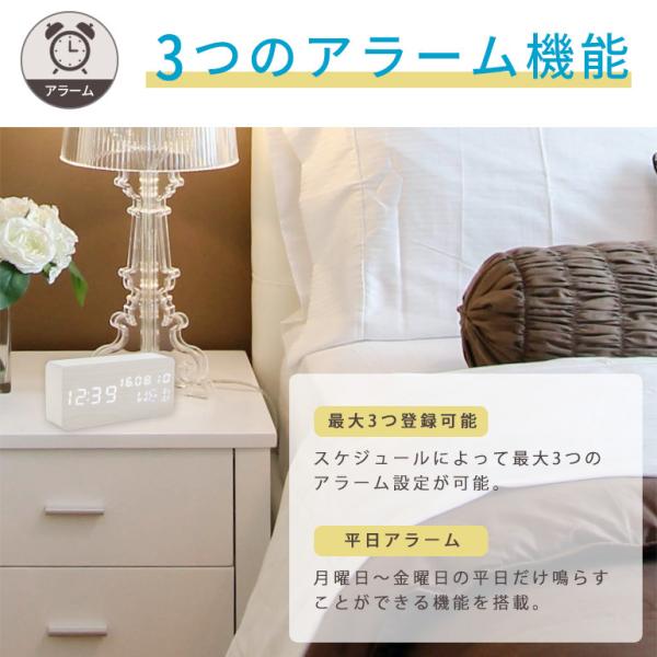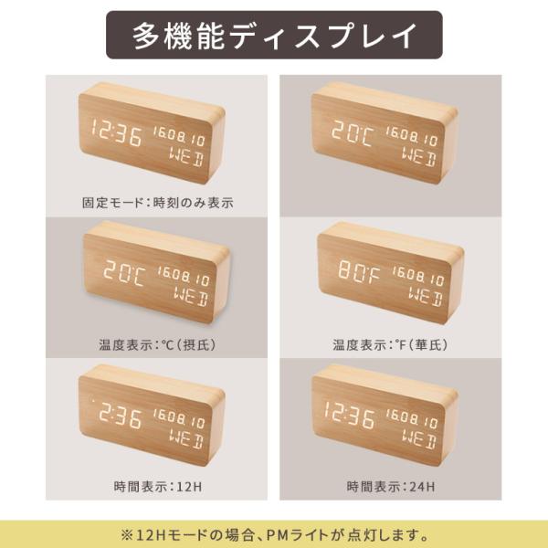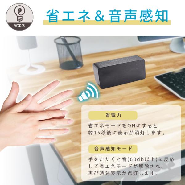 【訳アリ(箱潰れ・箱なし)】木目調 置時計 USB デジタル リビング 目覚まし時計 温度計 音感センサー 輝度調節 時計 おしゃれ USB給電 送料無料