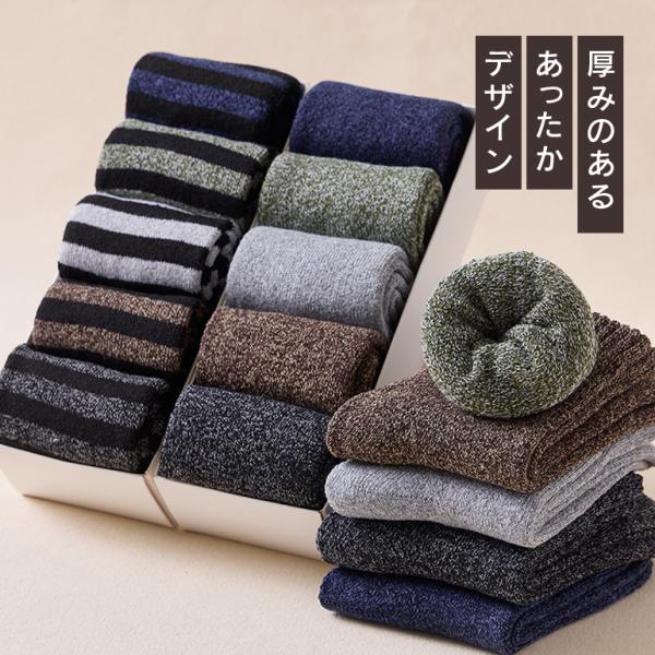 靴下 メンズ ソックス 5足 セット くつ下 男性用 5足組 暖かい フリーサイズ おしゃれ 冬 厚手 冬用 無地 防寒 冷え 冷え性 まとめ買い 紳士用 ガジュアル