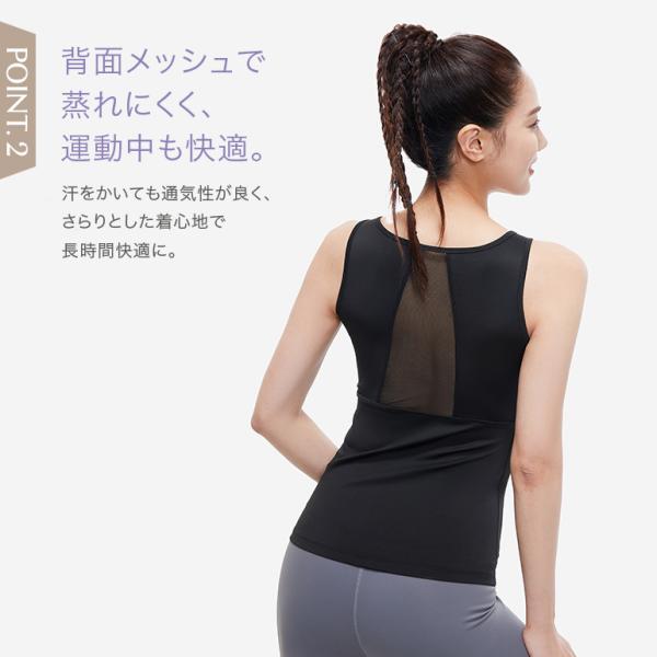 ヨガウェア レディース 揺れない ヨガ タンクトップ 小さめラウンドネック 背面メッシュ 通気性 蒸れにくい ジム フィットネス ランニング