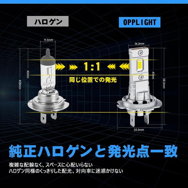 H7 ledバルブ LEDヘッドライト 爆光 車検対応 新車検対応 H7 3倍明るさ バイク用 純正配光 ホワイト 6000K 9600LM 12V車用 2個セット Opplight