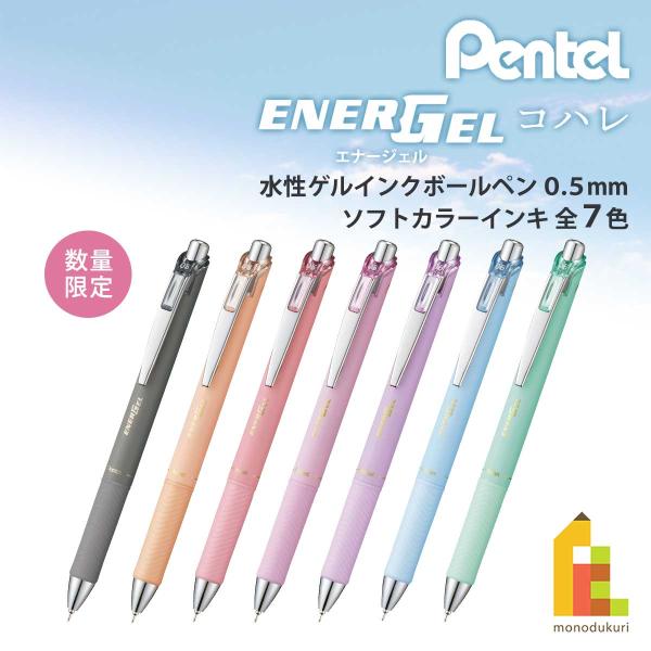 ぺんてる (数量限定) エナージェルコハレ 0.5mm 水性 ゲルインクボールペン ソフトカラーインキ 単色 (全7色) 速乾 ネコポス可