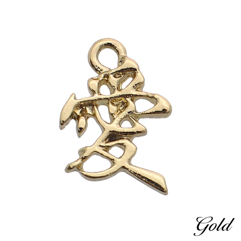 チャーム,キーホルダー,ペンダント,漢字,愛,ハンドメイド,材料,金具,部品,カラワク,空枠,飾り,装飾,創作,自作,加工,手作り,デコレーション,作家,デザイナー,クリエイター,オリジナル,DIY,問屋,卸売り,セット,まとめ買い,まとめ売り,お得,激安,特価,ゴールド,ニッケル,金,銀