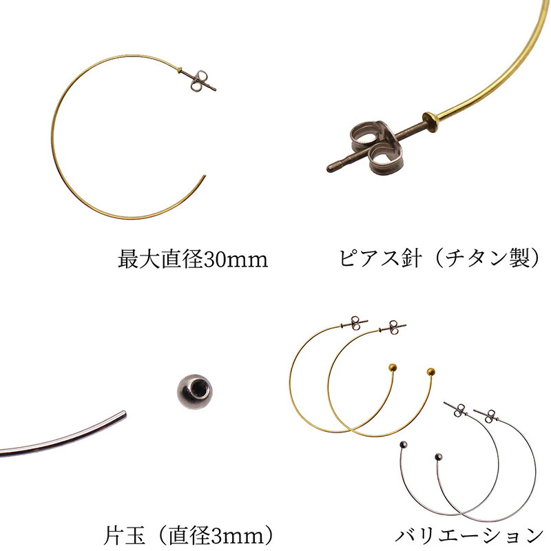 ピアス フープ ワイヤー チタン 片玉 1ペア 直径30mm アクセサリー パーツ ハンドメイド 材料 金具 装飾
