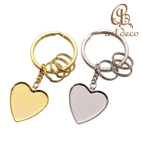 キーリング キーホルダー ハート型 3連 10個 23mm×22mm アクセサリー パーツ ハンドメイド オリジナル 材料 金具 装飾 カラワク 空枠