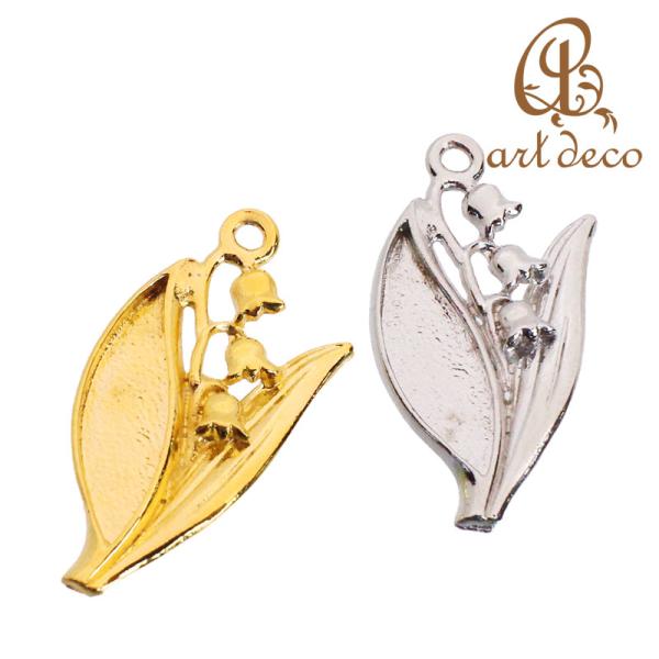 チャーム ペンダントトップ 花 すずらん 2個 28mm×15mm アクセサリー パーツ ハンドメイド オリジナル 材料 金具 装飾 カラワク 空枠