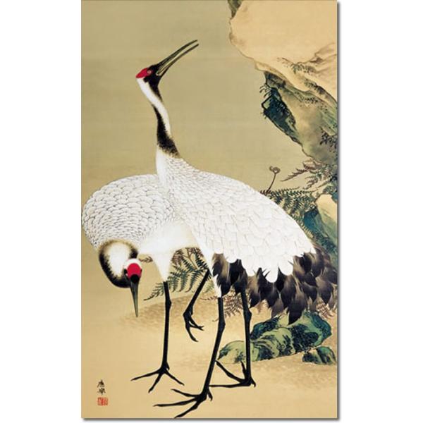 掛け軸 掛軸 円山応挙(まるやまおうきょ)・双鶴図(そうかくず) 尺五 名作品 桐箱畳紙収納 風鎮付き