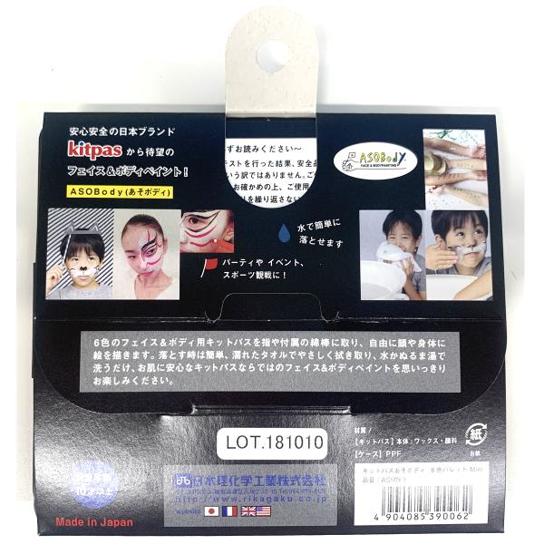 6色のキットパスを使って自由に顔や身体に絵を描くことができ、簡単に気軽にフェイス&ボディペイントが楽しめます。