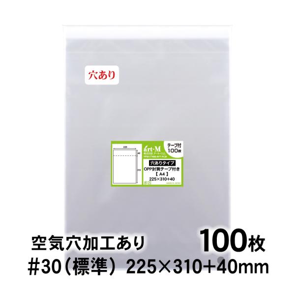 OPP袋 A4 空気穴あり テープ付 100枚 30ミクロン厚(標準) 225×310+40mm 透明袋 国産