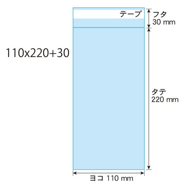 OPP袋 110×220 テープ付 100枚 30ミクロン厚(標準) 110×220+30mm 透明袋 国産