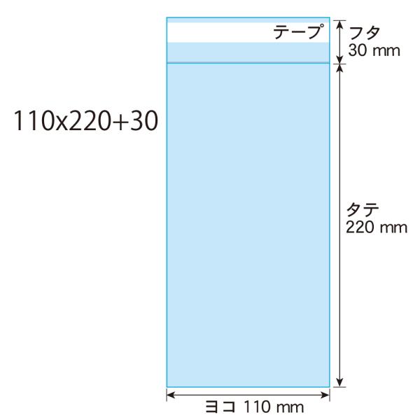 OPP袋 110×220 テープ付 1000枚 30ミクロン厚(標準) 110×220+30mm 透明袋 国産