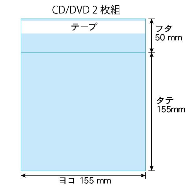 CD/DVD2枚組用のヨコ入れタイプの透明、テープ付OPP袋です。