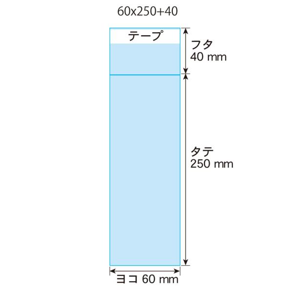 60mm×250mmの透明、テープ付OPP袋です。