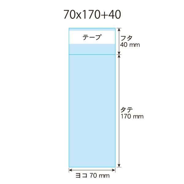 OPP袋 70×170 小袋 テープ付 100枚 30ミクロン厚(標準)70×170+40mm 透明袋 国産