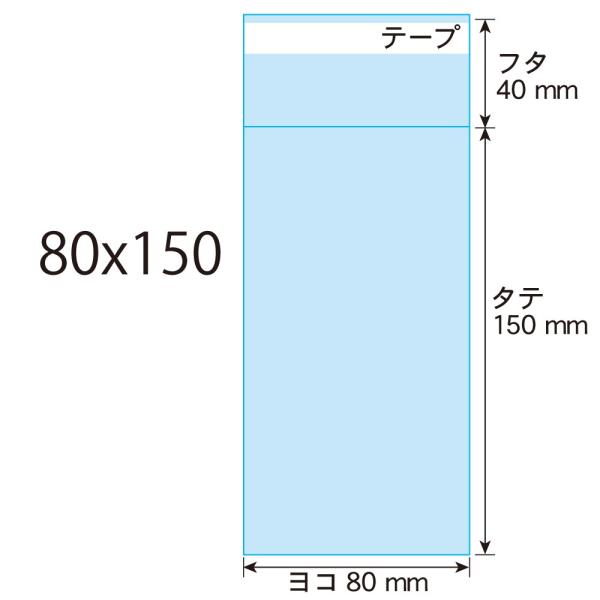 OPP袋 80×150 小袋 テープ付 200枚 30ミクロン厚(標準) 80×150+40mm 透明袋 国産