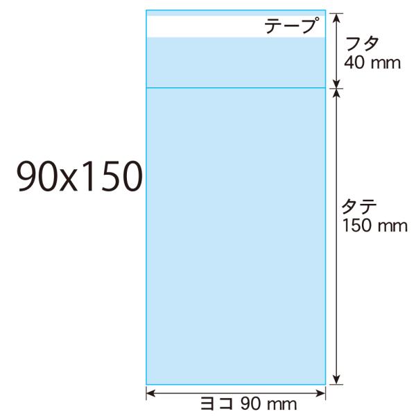 90×150mmの透明、テープ付OPP袋です。
