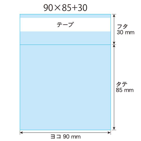 OPP袋 90×85 四角い小袋 テープ付 1000枚 30ミクロン厚(標準)90×85+30mm 透明袋 国産
