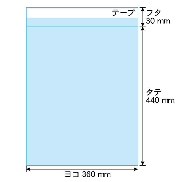 OPP袋 A3ワイド 5cm巾広 テープ付 100枚 30ミクロン厚(標準) 360×440+30mm 透明袋 国産 二つ折り発送